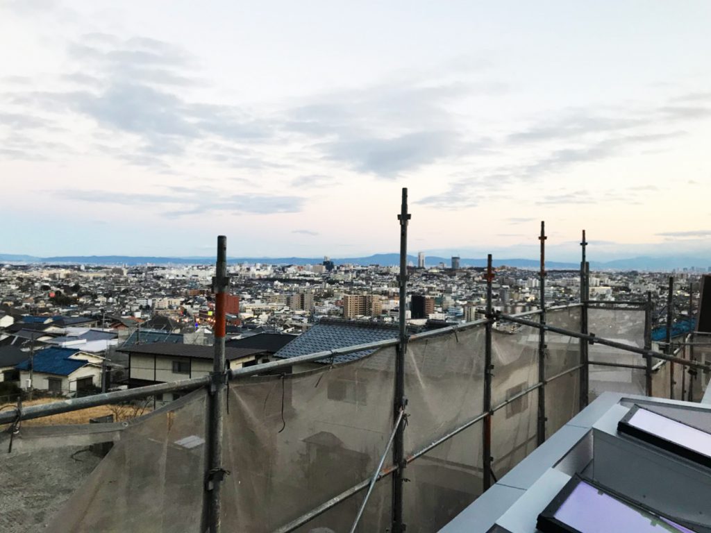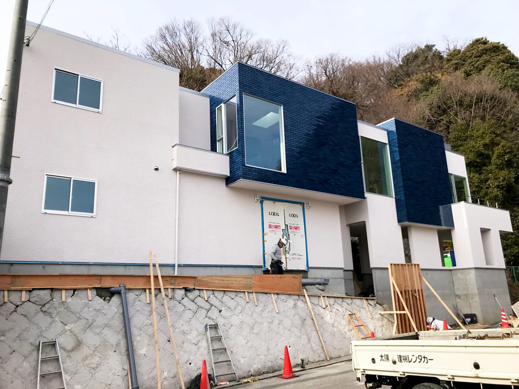 節分の日、現在進行中の箕面の家の外観がほぼ完成し、その端正なお顔が白日の元にさらされた