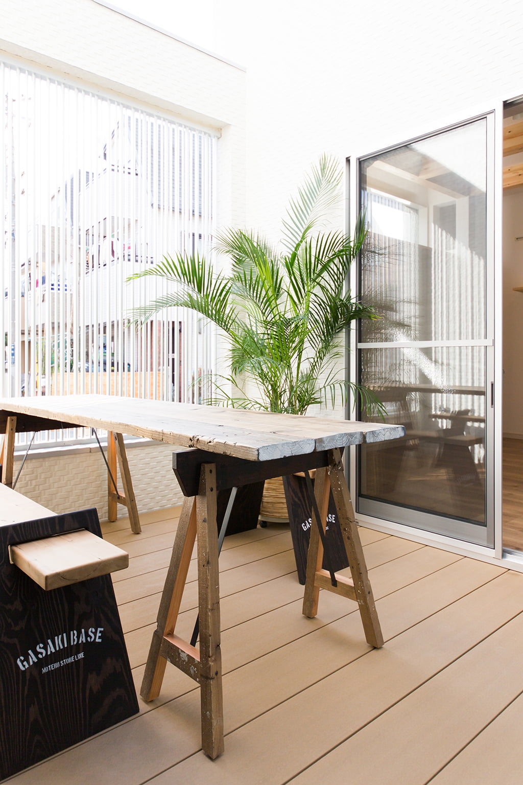 目隠しのルーバーは外からは見えず、中からは見える優れものだ。