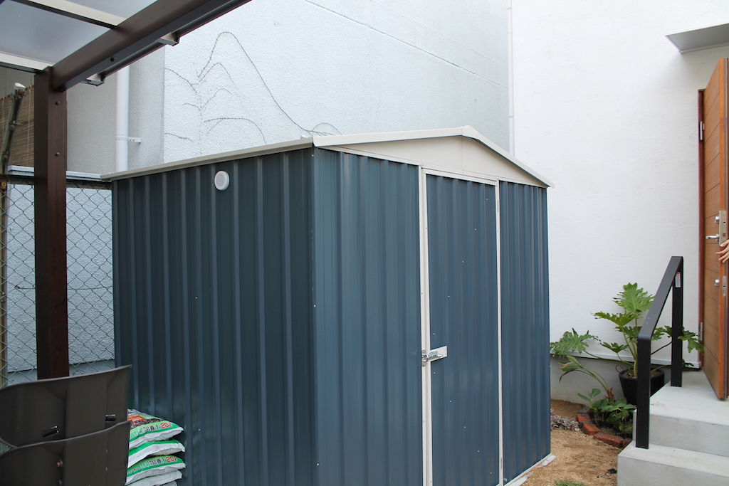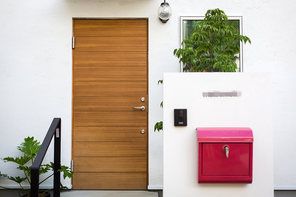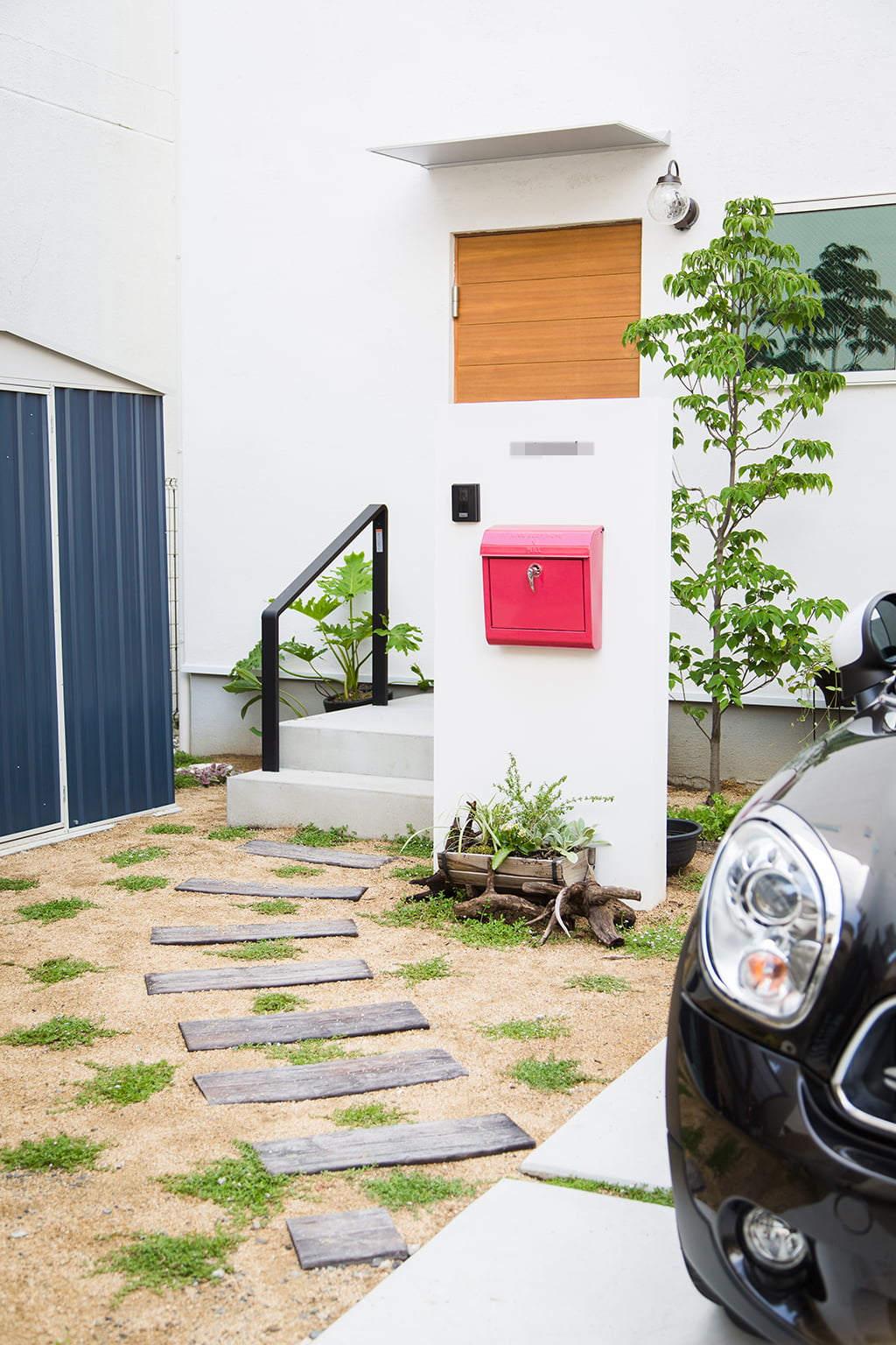 木のステップもホームセンターで買ってきた板をお客様ご自身で設置し、ポストや表札も買ってきて取り付けたそう。