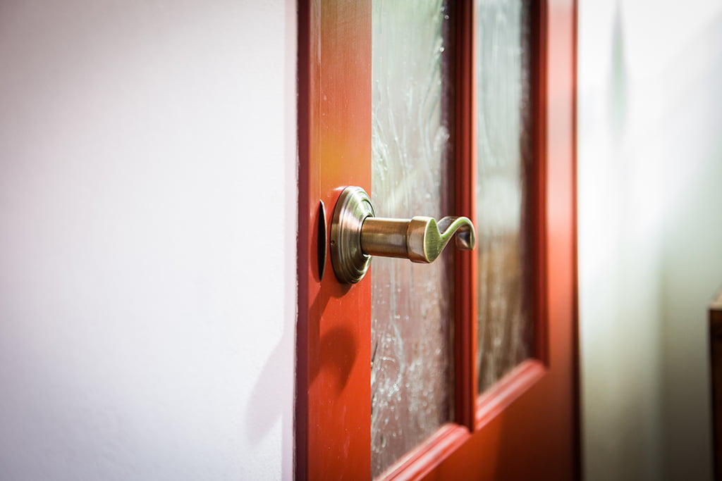 本物の木にアンティークガラスと真鍮のドアノブのベストマッチ。むちゃくちゃかわいい。