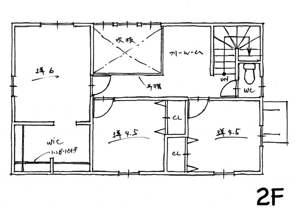 2Fには洋室が3つと趣味のフリースペース。