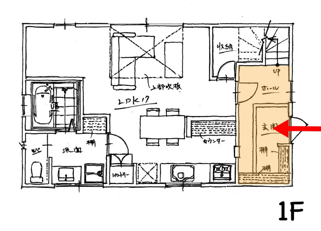 オープンにすることによって、ベビーカーも傘も靴も、そのままIN。出入りの動線がスムーズに。