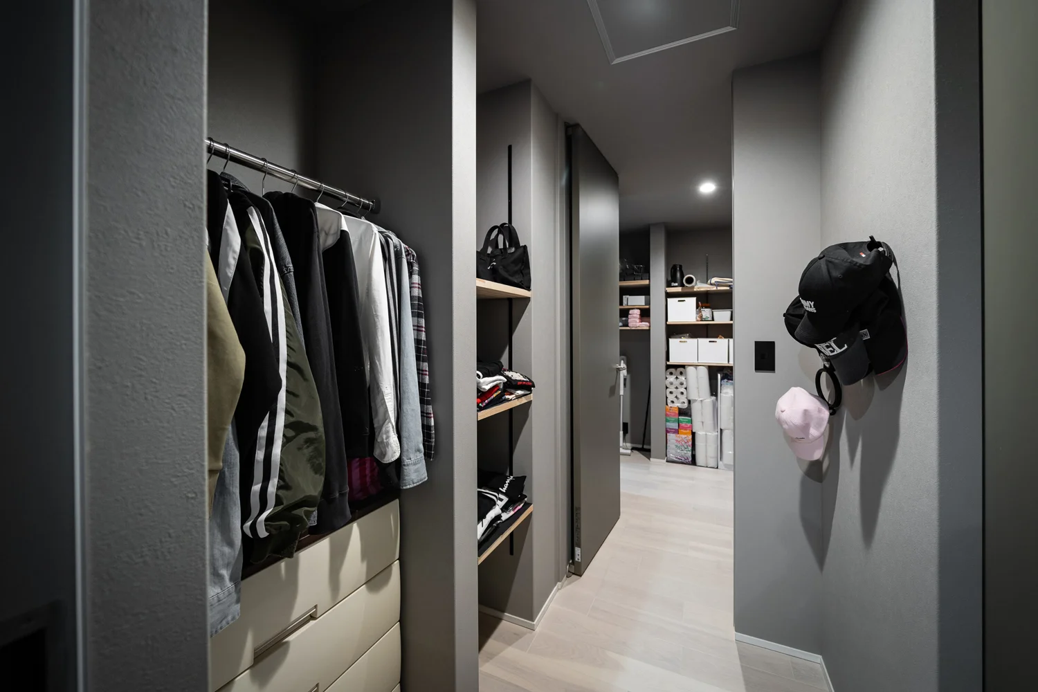 「ファミリークローゼット+ランドリールーム」という様に、収納にプラスαする収納設計にするとさらに幸福度が増す