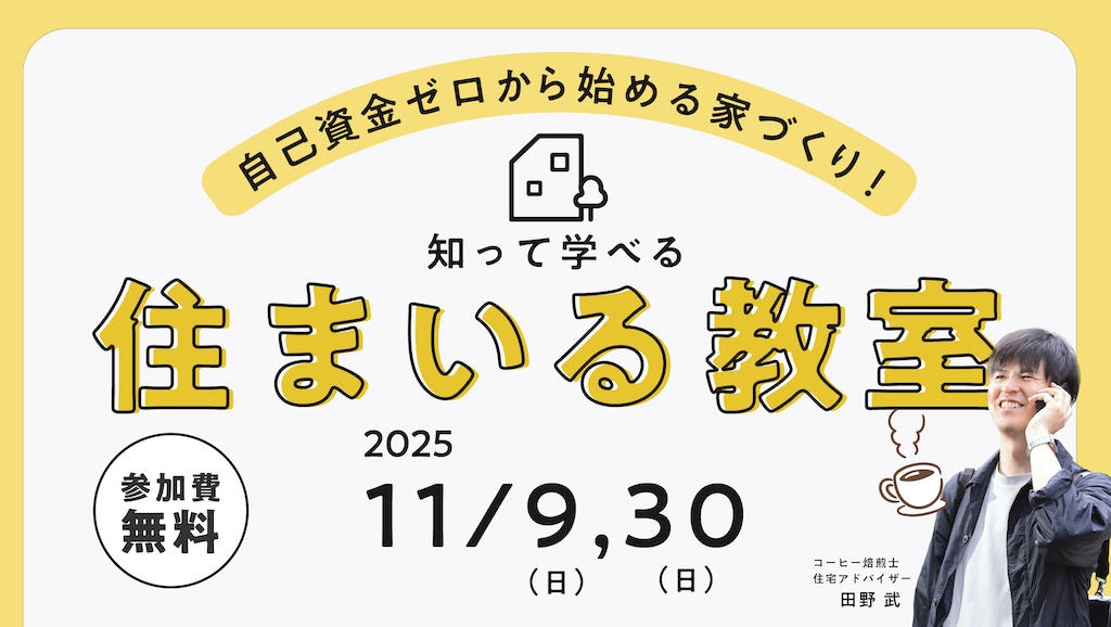 焙煎士であり、住宅アドバイザーの田野 武が腕によりをかけたコーヒーを振る舞いつつ、自己資金ゼロから始める家づくりのための土地探しの仕方や、資金計画の作り方をご指南いたします。
