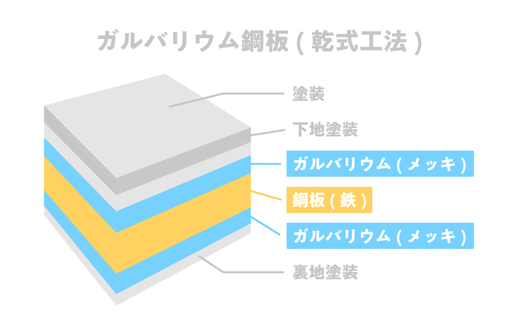 「ガルバリウムという合金」でメッキされた(膜をかぶした)鉄=ガルバリウム鋼板!